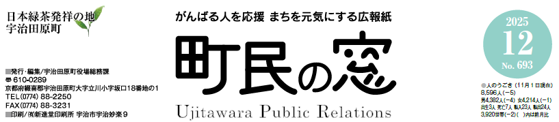 くらしの情報ーお知らせー(1) ◆税の申告受付を電話での事前予約制へ変更 申告期間中の住民の方の待ち時間と混雑緩和のため、令和8年2月16日(月)からの住民税(町・府民税)、所得税および復興特別所得税の申告受付を電話での事前予約制へ変更します。 受付方法:来庁予定の前日までに電話で予約 ※受付開始時期などの詳しい内容は1月号に掲載します。 問合せ:税住民課 【電話】88-6633 ◆令和8年度宇治田原町放課後児童健全育成施設(元...