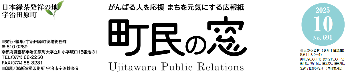 赤い羽根共同募金にご協力ください 10月から全国一斉に行われる「赤い羽根共同募金運動」。集まった募金は、宇治田原町内の福祉活動に使われます。自分のまちをよくする仕組み「共同募金」にご理解とご協力をお願いします。 問合せ:福祉課 【電話】88-6635