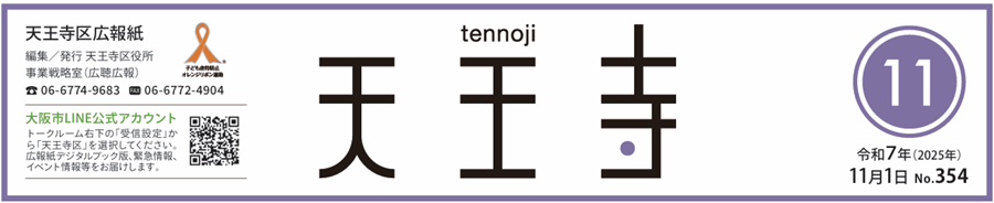 親子で遊びに行きませんか? ◆つどいの広場 うえしおキンダースクール 地域子育て支援センター「きらきら」 (上汐3-4-9) 【電話】080-9380-0016 月~金(祝日除く)9:00~14:00 ◇イベント「音楽リトミック」〔要予約〕〔無料〕 日時:11/27(木) (1)10:00~ (2)11:00~ 定員:各7組 申込方法:11/6(木)9:00~ 予約フォーム(本紙参照)にて ◆つどいの広場 天王寺区子ども・子...