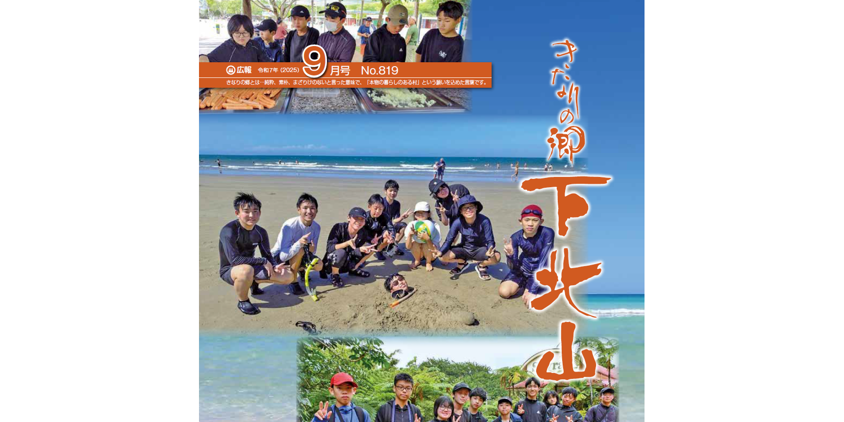 その他のお知らせ(広報下北山 2025年9月号) ■村の情報を発信しています 広報誌に掲載しきれない写真や情報などをインターネットで発信していますので、ぜひご覧ください! ・村の暮らしを届けるウェブサイト「きなりと」 ・LINE ・YouTube ・Facebook ・Instagram ■人の動き 令和7年7月30日現在 ■広報 きなりの郷下北山 令和7年(2025)9月号 No.819 発行:下北山村役場 〒639-3803 奈良県吉野郡下北...