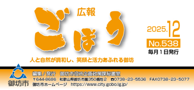 情報ステーション(1) ■納期限 今月の納期限は12月25日(木)です ・固定資産税(3期) ・国民健康保険税(6期) ・後期高齢者医療保険料(6期) ・介護保険料(12月分) ■くらしの相談 ▽心配ごと相談 日時:毎週水曜日13:00~16:00 場所:福祉センター3階 問合せ:御坊市社会福祉協議会 【電話】0738-22-5490 【FAX】0738-22-9991 ▽人権相談 日時:毎週月曜日~金曜日8:30~17...
