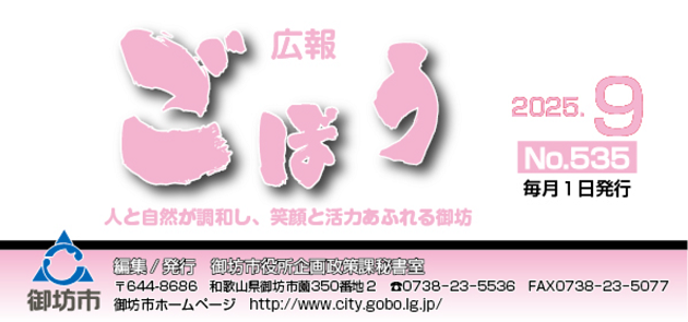 情報ステーション(1) ■納期限 今月の納期限は9月30日(火)です ・国民健康保険税(3期) ・後期高齢者医療保険料(3期) ・介護保険料(9月分) ■くらしの相談 ▽心配ごと相談 日時:毎週水曜日13:00~16:00 場所:福祉センター3階 問合せ:御坊市社会福祉協議会 【電話】0738-22-5490 【FAX】0738-22-9991 ▽人権相談 日時:毎週月曜日~金曜日8:30~17:15 場所:和歌山地方法...