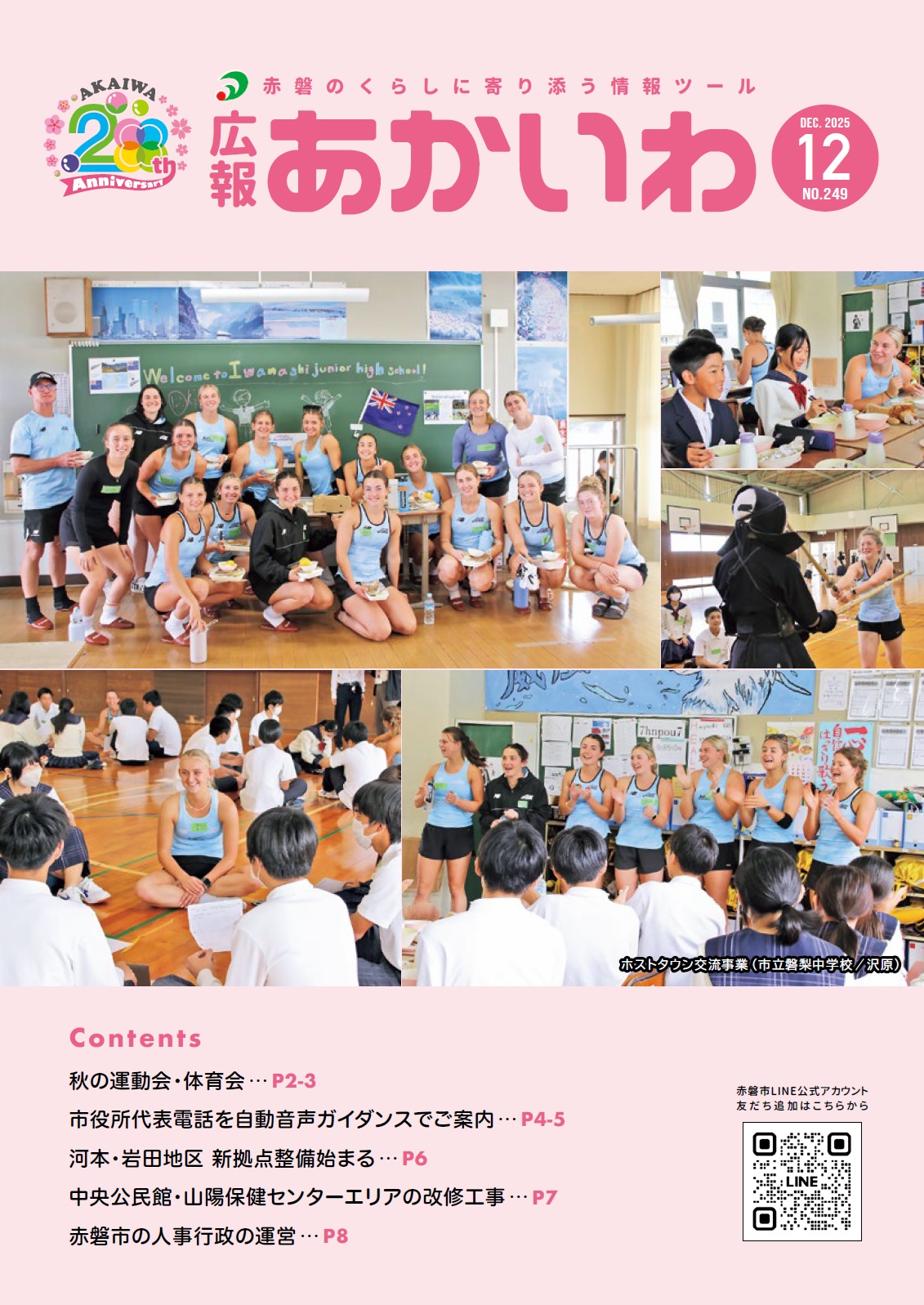 令和8年 赤磐市二十歳の集い 開催のご案内 二十歳を祝う式典を開催します。二十歳の集い実行委員会によるイベントや懐かしい仲間との再会にも期待して、ぜひご出席ください。 日時:令和8年1月11日(日) 午前11時(式典開始) 場所:山陽ふれあい公園 総合体育館 対象:平成17年4月2日から平成18年4月1日の間に生まれた人で赤磐市住民基本台帳に記載されている人 ※市外へ転出した人で出席を希望する人は申し出てください。 問合せ・申込先:教育委員...