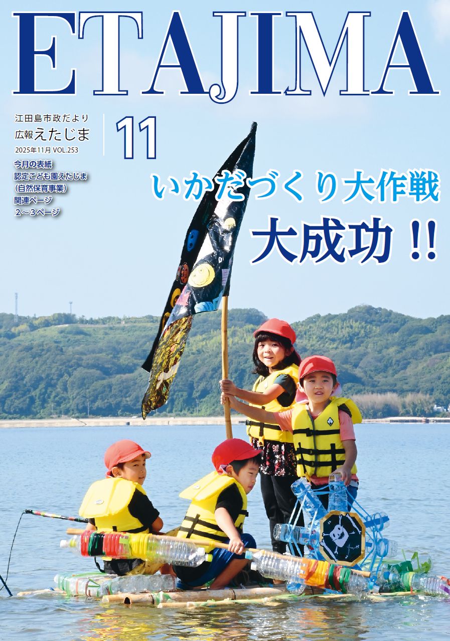 今月の表紙 ■いかだづくり大作戦大成功!! 認定こども園えたじま(自然保育事業) 関連ページ:本紙2~3ページ