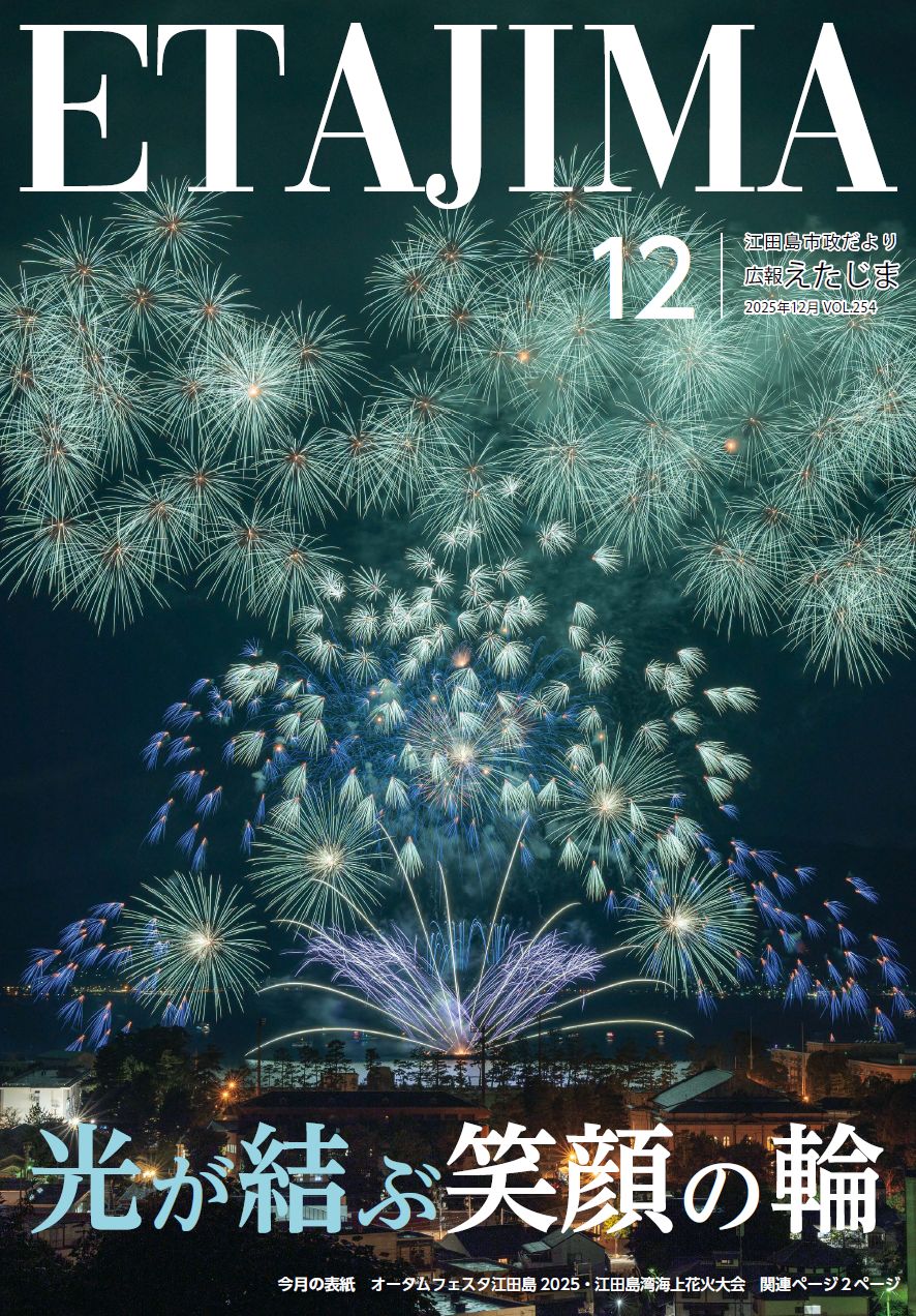 今月の表紙 ■光が結ぶ笑顔の輪 オータムフェスタ江田島2025・江田島湾海上花火大会 関連ページ本紙2ページ