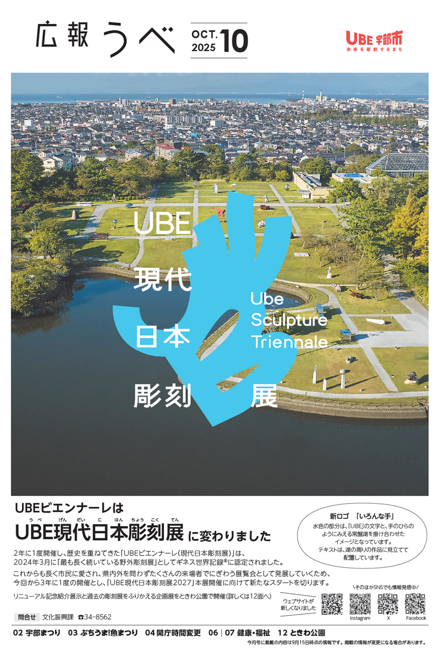 UBEビエンナーレはUBE現代日本彫刻展(うべげんだいにほんちょうこくてん)に変わりました 2年に1度開催し、歴史を重ねてきた「UBEビエンナーレ(現代日本彫刻展)」は、2024年3月に「最も長く続いている野外彫刻展」としてギネス世界記録(R)に認定されました。 これからも長く市民に愛され、県内外を問わずたくさんの来場者でにぎわう展覧会として発展していくため、今回から3年に1度の開催とし、「UBE現代日本彫刻展2027」本展開催に向けて新たなスタートを切ります。 リニューアル記念紹介展示...