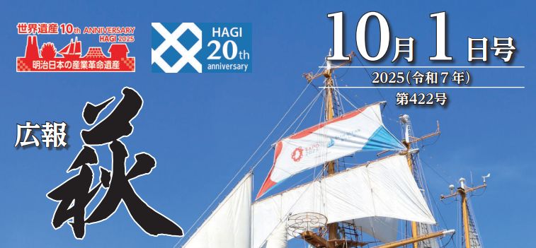 表紙の説明 9月6~7日、「明治日本の産業革命遺産」世界遺産登録10周年を記念し、幕末に萩藩が恵美須ヶ鼻造船所で建造した丙へいしんまる辰丸と庚申丸(こうしんまる)にちなみ、全長52mの帆船「みらいへ」が萩漁港に寄港しました。イベントでは、船内見学をはじめ、帆を張ったり、たたんだりするセイルドリルや体験航海などに市内外から約1,000人の方々が訪れました。なお、10月26日(日)には登録10周年を記念したシンポ...