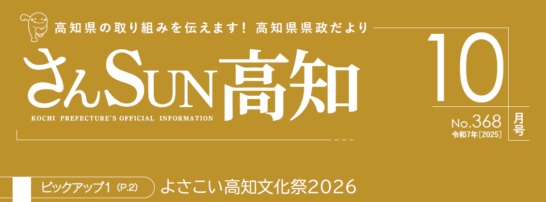 そのほかのお知らせ (さんSUN高知 令和7年10月号) ■今月の表紙 高知県のいまここ!一緒にワクワク! 海の見える丘に移転した「なかとさ美術館」に行ってみたよ! 詳しくはこちら!→ 【HP】https://www.town.nakatosa.lg.jp/life/list.php?hdnKeyword=%C8%FE%BD%D1%B4%DB%7E%A5%C8%A5%C3%A5%D7 ■令和7年8月1日現在の高知県推計人口(高知県統計分析課) 県人口:総...