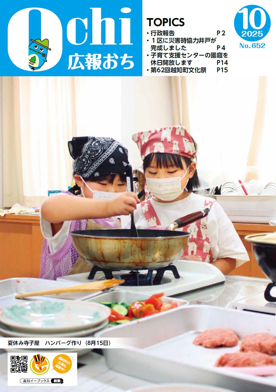 表紙 夏休み寺子屋 ハンバーグ作り(8月15日) 越知町の広報も掲載中! HP検索:高知イーブックス