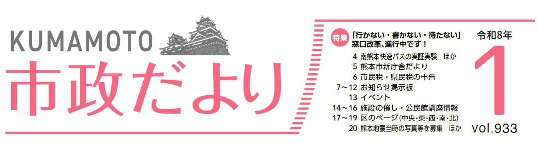 支えられた日々を、支え合う力に。 謹んで新年のご挨拶を申し上げます。 市民の皆様におかれましては、健やかに新年をお迎えのこととお慶び申し上げます。 昨年は、こども施策の基本方針である「こども計画」のスタートや、市役所の新庁舎整備及び庁舎周辺まちづくりの本格的な検討開始、熊本西環状道路(池上工区)の開通など、市民の皆様のより豊かな暮らしの実現に向け取り組んだ一年となりました。 また、8月に発生した大雨の対応では、発生直後から被災者の...