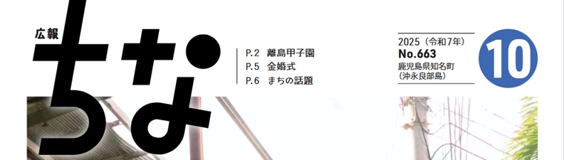 その他のお知らせ(広報ちな 2025年10月号) ■広報ちな 2025(令和7年)10月号 No.663 鹿児島県知名町(沖永良部島) 令和7年10月10日発行 発行・編集:知名町役場企画振興課 〒891-9295鹿児島県大島郡知名町知名1100番地 【電話】0997-84-3162 【FAX】0997-93-4103 【URL】http://www.town.china.lg.jp/