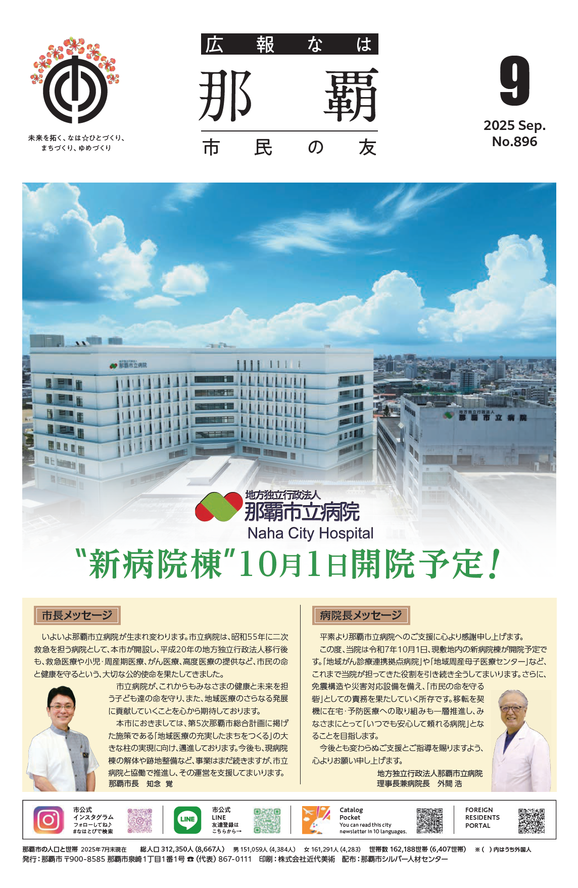 独立行政法人那覇市立病院 ”新病院棟”10月1日開院予定!(2) 那覇市立病院は、開院から45年が経過し建物の老朽化に伴う建て替えを進めてきました。“「結い」をキーワードとした、医療と地域を結ぶ新病院”をデザインコンセプトに掲げた新病院棟は、さらに強化された機能を備えています。今号では、開院間近の新病院棟の特長などをご紹介します。 ■病院概要 病院開設日:昭和55年5月1日(平成20年に地方独立行政法人に移行) 病床数:470床(一般病棟) 標榜診療科:36診療...
