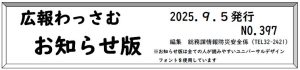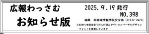 10/4(土) 町民植樹祭を開催します 本町の豊かな自然を守り、環境を大切にする取り組みとして「町民植樹祭」を開催します。 日時:10月4日(土)午前9時30分から1時間程度 ※送迎バスを運行します。ご利用の方は、※送迎バスを運行します。ご利用の方は、午前9時10分までに役場(町民センター玄関側)に集合してください。。 場所:南丘森林公園(多目的広場側駐車場)付近 ※会場付近の駐車スペースに限りがありますので送迎バスの利用にご協力をお願...