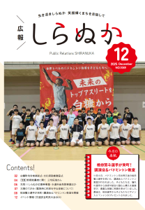 今月の表紙 ■桃田賢斗選手が来町! 講演会andバドミントン教室 11月8日、バドミントン元世界王者の桃田賢斗選手を招いた、講演会とバドミントン教室が行われました。子どもたちは、憧れの選手から技術や試合に臨む心構えを直接学び、貴重な体験に笑顔を見せていました。最後は、桃田選手から子どもたちにサイン入りTシャツがプレゼントされました。