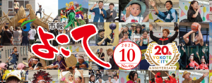 今月の表紙 9月6日・7日に開催された『全力!よこて祭り』では、広報担当が1万枚以上の写真を撮影しました。その中から、全力で楽しむ皆さんの写真を全力で厳選し並べました。 また、10月1日に当市は市制施行20周年を迎えたため、大きく『20』を表現しました。(右写真は、7日のフィナーレの様子です) ※写真は本紙をご覧ください。