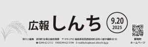 ふるさと産業まつりを開催します! 11月8日(土) 場所:役場駐車場および改善センター 入場無料 ■~イベント内容~ 特産品先着プレゼント ステージイベント 各種展示・体験コーナー 農産物品評会 など ■同時開催 ・健康福祉まつり ・保育展 ・図書館まつり ・下水道展 ※詳細は10月20日号の広報しんちの折り込みおよびホームページでお知らせします。 問い合わせ:産業振興課 商工観光係 【電話】62-2194