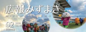 表紙 2月1日、小倉競馬場で開催された北九州都市圏域主催の「自治体対抗!ご当地キャラダービー」に「みずまろ」が出場し、ご当地キャラ15体中、3位となりました。同着で優勝したのは、吉富町の「かみんくん」と築上町の「築上(きずきのぼる)」でした。 応援に駆けつけてくれた皆さん、ありがとうございました!