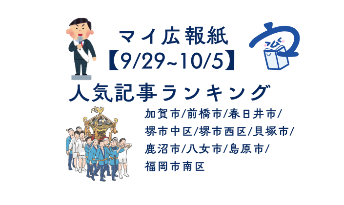 【加賀市長選・島原市温水プール】人気記事ランキング 堺市中区・春日井市など【9/29~10/5】